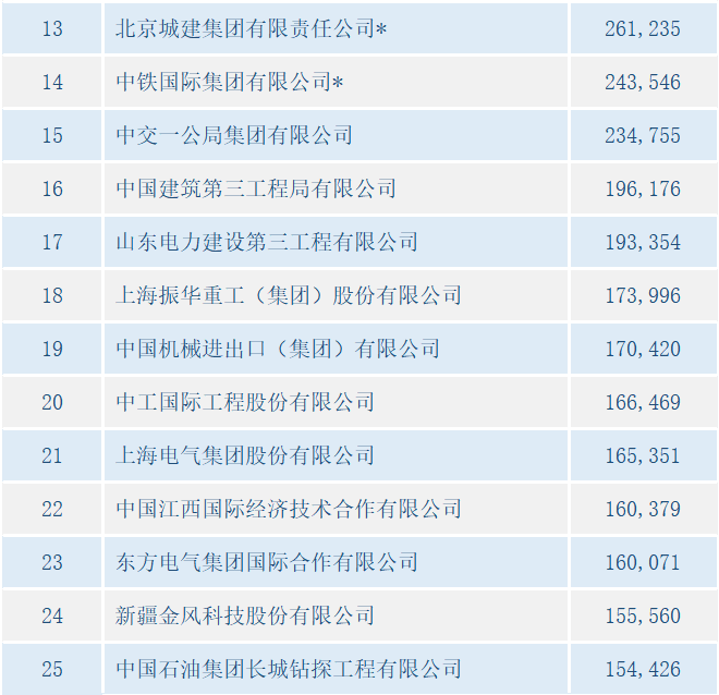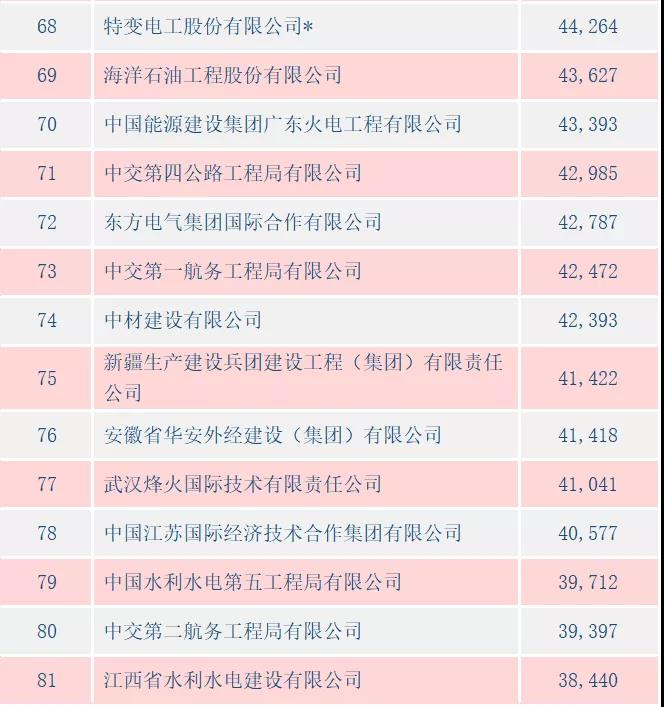 2月24日,商务部发布2020年中国对外承包工程100强榜单,中鼎国际连续第三年入选,在对外承包完成额100强榜单中位列82名,比上年度95名前进了13位;首次进入对外承包新签额100强榜单,位列100名。